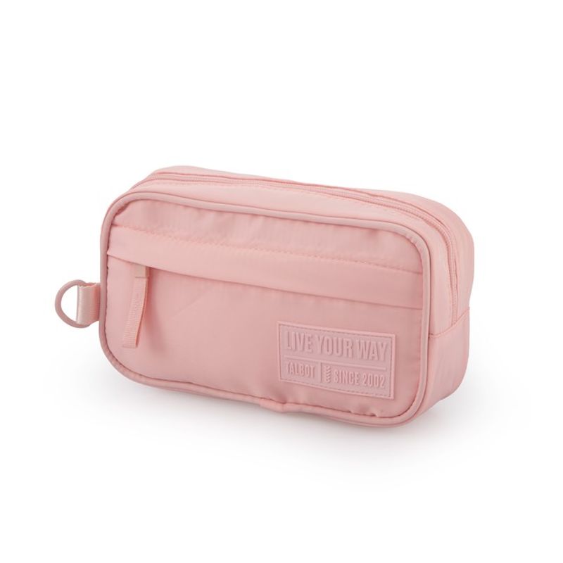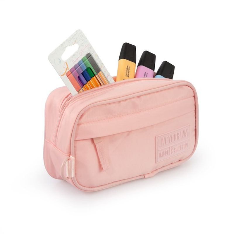 - Marca: Talbot- Nombre: Canopla Talbot Urban Vibes- Modelo: Rosa- Descripción:* Arandela lateral* 2 Cierres a tono * Bolsillo frontal* Tiracierre de tela estampado- Medidas: 6,5 x 22 x 12 cm.- Peso: 120 gr.- Capacidad: 3 litros