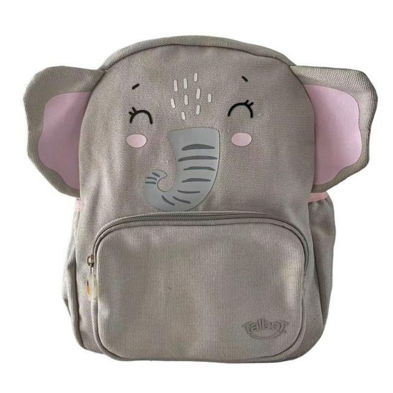 - Marca: Talbot- Nombre: Mochila espalda Talbot Wild Buddies 30 cm.- Modelo: Elefante- Incluye: * 2 bolsillos laterales para guardar botella* Etiqueta rotuladora* 2 cierres a tono * Tiracierre de acrílico- Medidas: 30 x 24 x 11 cm.- Peso: 330 gr.- Capacidad: 16 litros